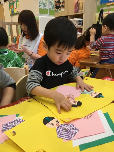 製作だけでなく遊びの中でもシール貼りを経験していくうちにこんなに指先を使っての製作が出来る様になった姿にまた成長を感じる事ができました![]()