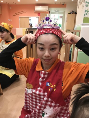 保育者も可愛い女の子!朝からキラキラ冠をつけてお子様達と一緒におひな祭り会を楽しみました![]()
