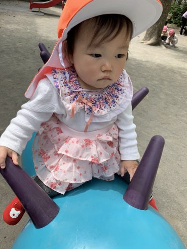 初めてのいもむしの乗り物にちょっぴり緊張![]()