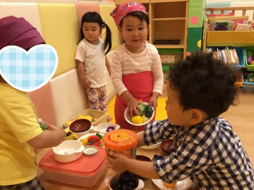 また、ある日の室内遊びでは、本格的なおままごと遊びをする姿も見られました