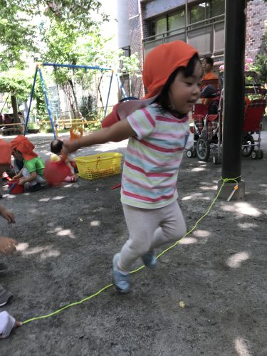 今週は戸外活動として、縄跳びを使った運動遊びに挑戦しました