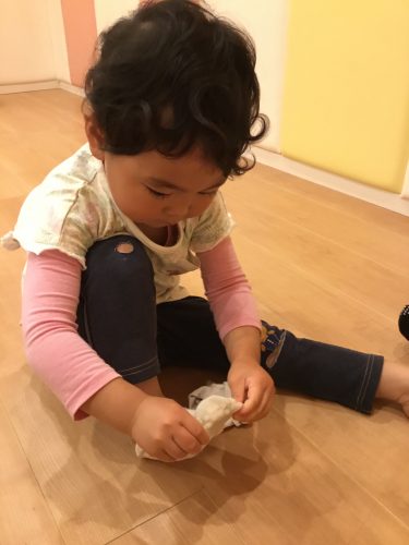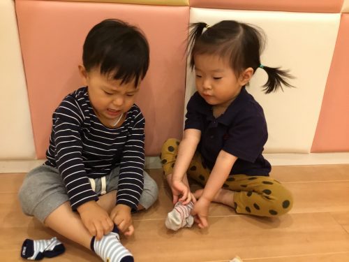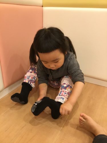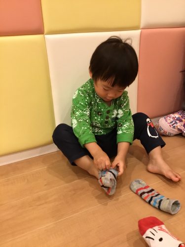 お子様たちが自分で靴下を履こうととする気持ちが芽生えてきて、