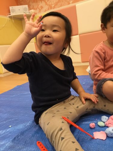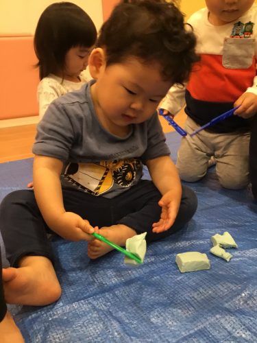 色のついた粘土をやってみたりと雨の日もお子様たちは