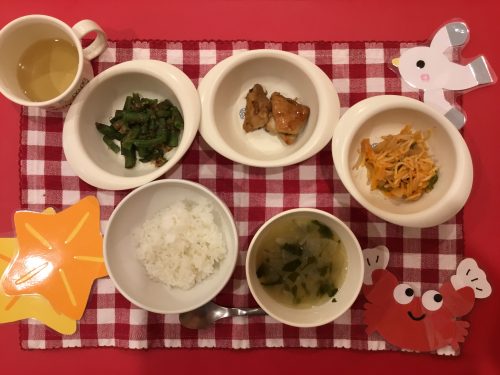 2019.07.03|給食ピックアップ 7月3日(水)★お給食★離乳食★ ☆鶏のさっぱり煮 ☆ツナ入りスパゲティー ☆いんげんのおかか和え ☆お味噌 ☆ご飯 ☆そぼろ煮 ☆茹でインゲン ☆お味噌 ☆お粥 前へ 次へ