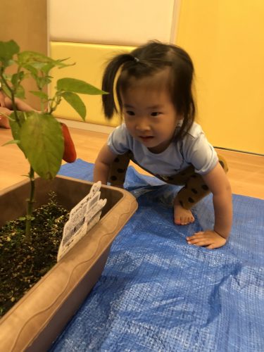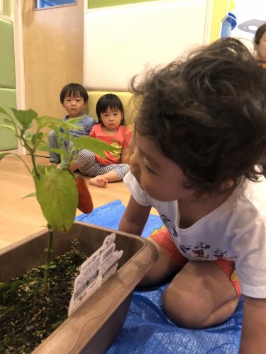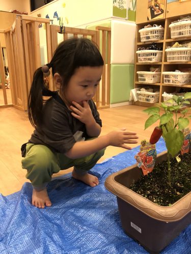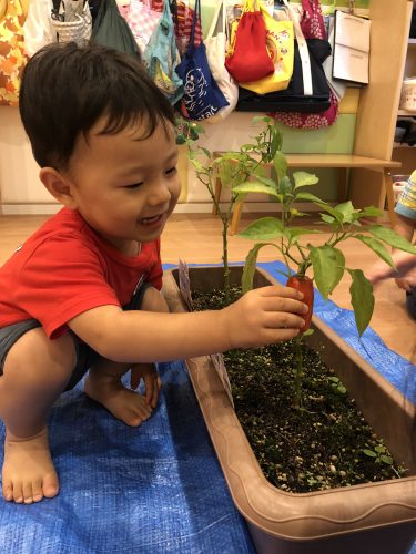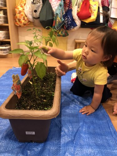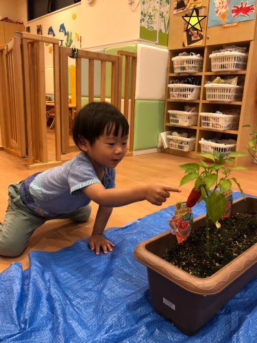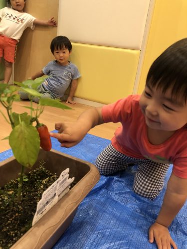 りんご組さん、いちご組さんで赤ピーマンを観察し、収穫をしました![]()