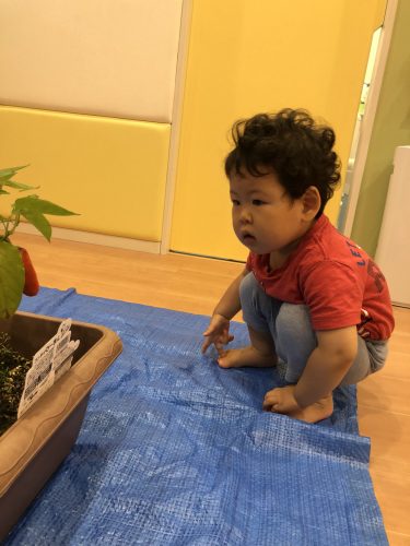 指先でツンツン?と触ってみてニッコリ嬉しそうな表情を見せてくれたいちご組さん?