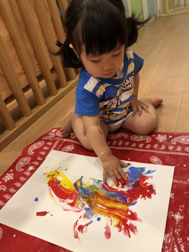 今回は自分の手を自由に動かすことで、絵の具の感触や色の変化を楽しみました![]()