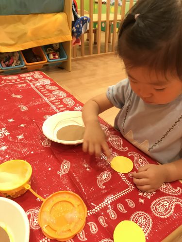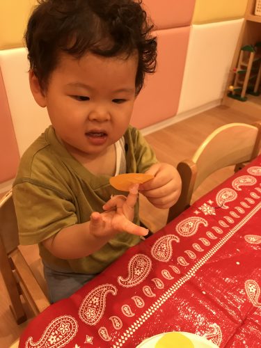 お子様の触覚、視覚、嗅覚が刺激され、アートな作品となりました![]()