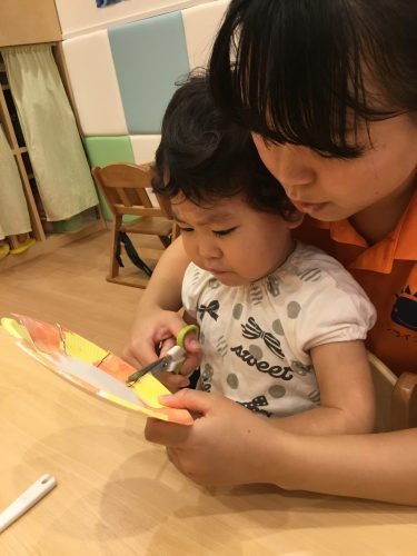 ハサミの使い方や、危険についても活動前にきちんとお話ししてから取り組んだので、いつも元気いっぱいのお子様達もこの時ばかりは慎重にそーっと手を動かす様子が見られました![]()