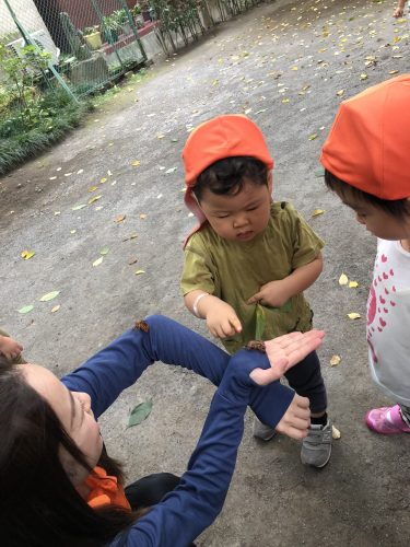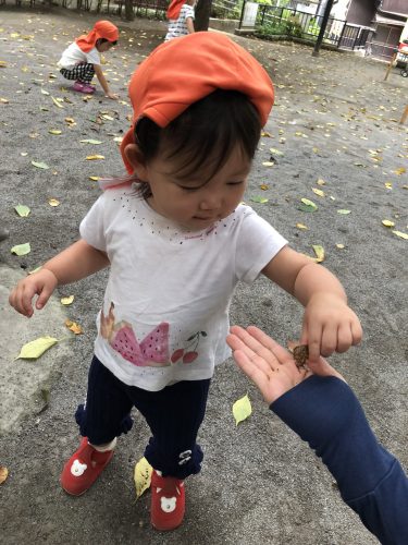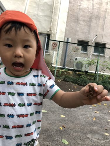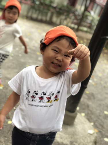 お子さまたちが大好きな絵本の中にカサカサかいじゅう(セミのぬけがら)が出てくるお話があるので「カサカサかいじゅういたよ!!」と嬉しそうに教えてくれました![]()