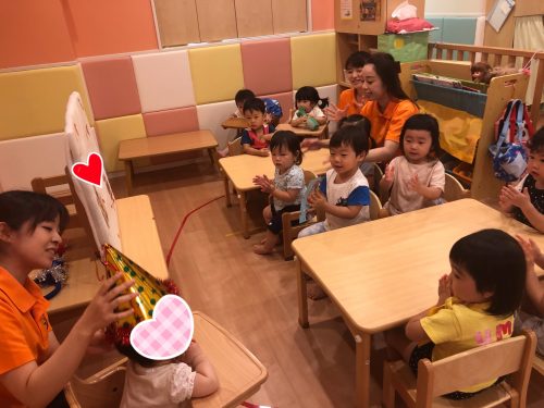 お子さまたちは誕生会をとても楽しみにしており、朝登園して装飾された保育室を見ると、「あ!!◯◯ちゃんのお誕生日だ!!」と張り切っていましたよ![]()