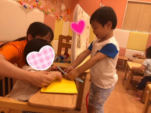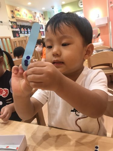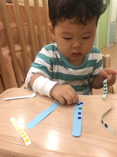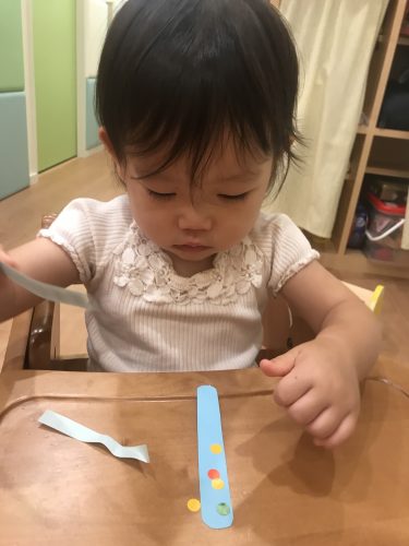 初めて使う製作道具をジーっと見つめてから、保育者がお手伝いをしたり見本を見せるととても楽しそうに製作をしてくれました![]()