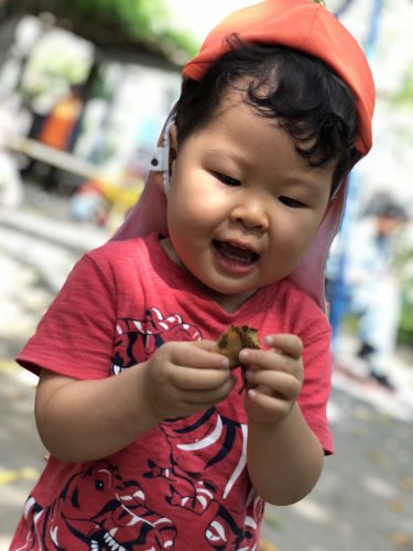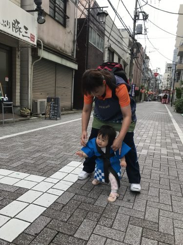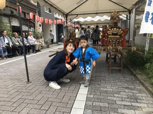 先日、土曜日に白山神社のお祭りに行ってきました。ご近所の方から「可愛いね~」と言っていただきお神輿や太鼓も叩かせていただきました。貴重な体験をさせて頂きありがとうございました。可愛いもも組さんのお友だちも歩いて出発です