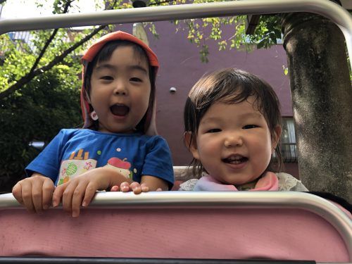 可愛いもも組さんお友だちも、心地よい秋の風を楽しんでいます