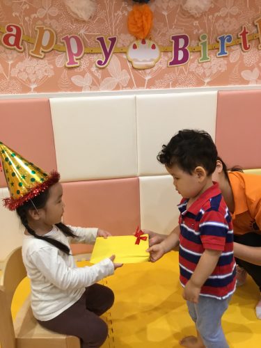 誕生会はお誕生児さんだけでなく、お祝いしてくれるお子さまにとっても楽しい時間なようです?