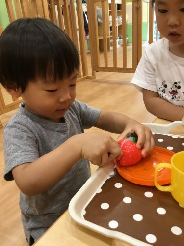 最近は自分もやりたい!一人でやってみたい!という思いを一生懸命に言葉や表情で伝えてくれるようになったいちご?組さん