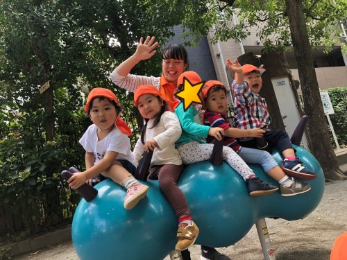 イモムシのような遊具にもお友達みんなで乗ったら楽しいですね✨