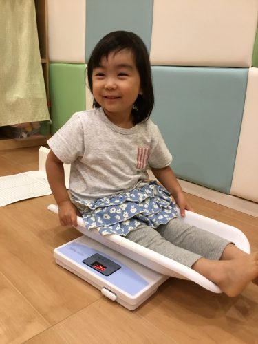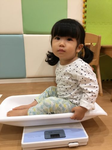 りんご組さんは「さすが!お兄さん、お姉さんです」保育者が身体測定の準備をしていると