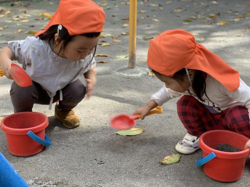 保育者は、そっと陰から、その様子やつぶやきを聞き楽しさを共有して思わずニッコリ