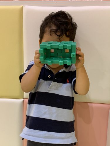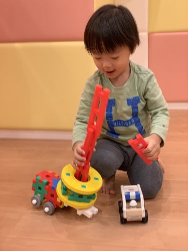 「工事しているところに、クレ-ン車がきました~」と自分の思い描いている作品も作れるようになりなりました。