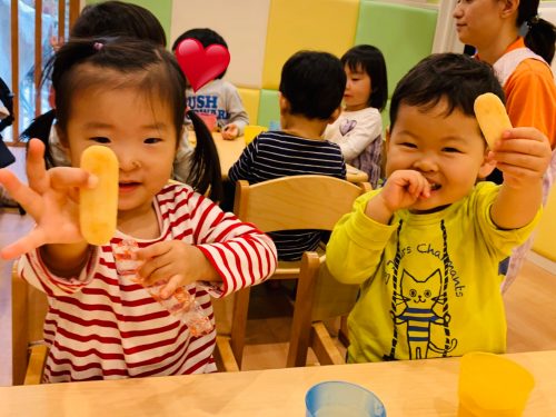 身体測定の後は待ちにまったおやつの時間です