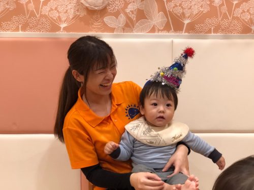 お誕生会当日は、ちょうど1歳になるお誕生日となんと、偶然一緒の日でした![]()