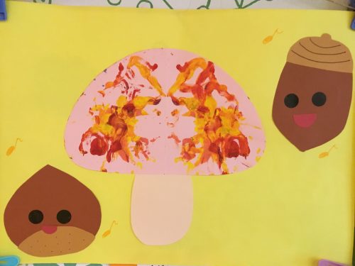 もも組?さんはデカルコマニーでキノコに色塗りをしました?