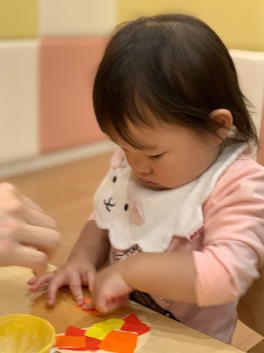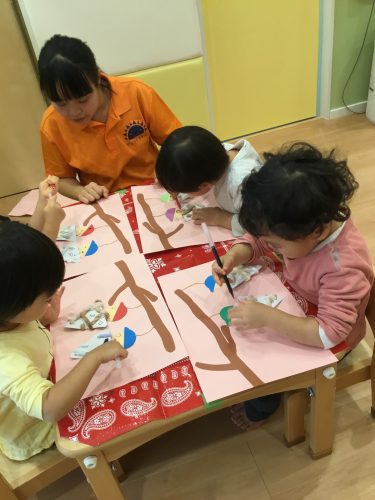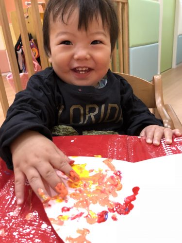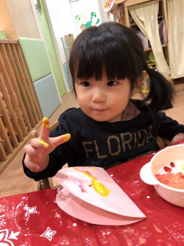 絵の具の感触を楽しみながら指先を上手に使って製作を楽しんでいました✌️