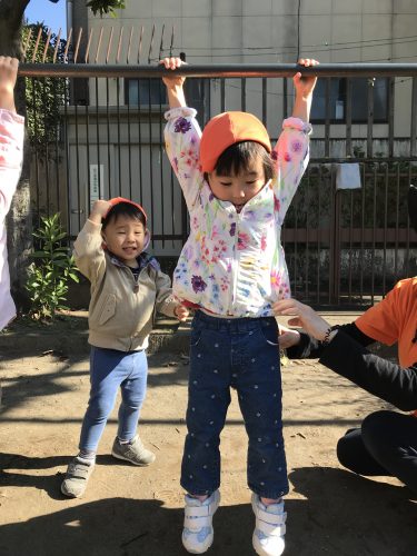 戸外遊びでは木登りや鉄棒に挑戦してみたり、