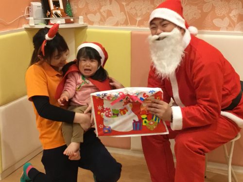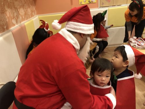 突然のサンタさんの登場に嬉しくもドキドキのお子様達??