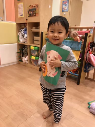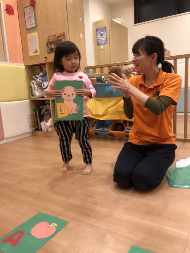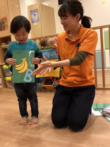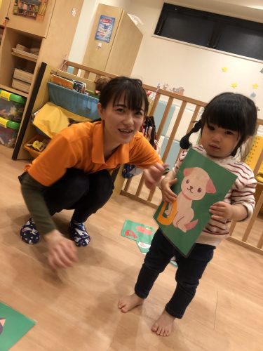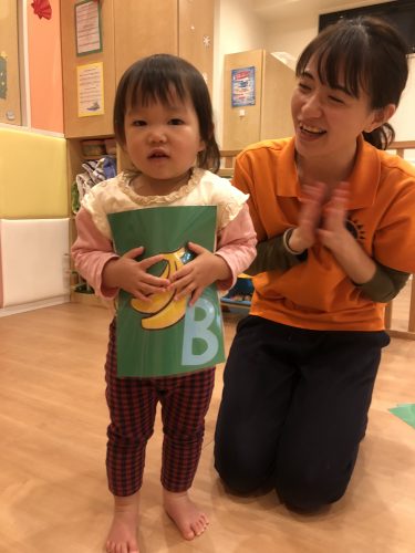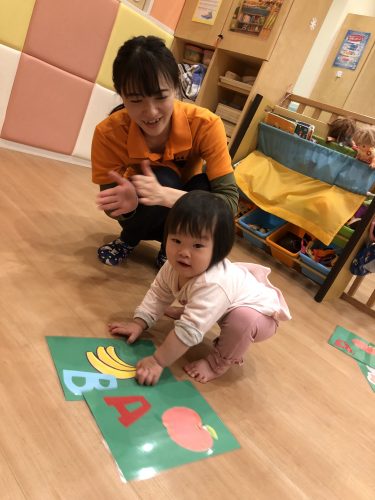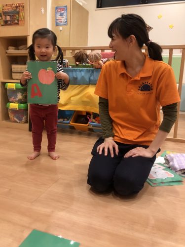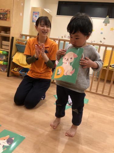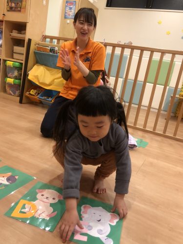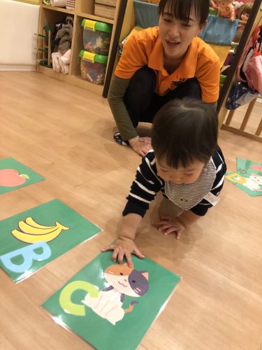初めに保育者がカードを見せながら発音を知らせると、音と絵をしっかり記憶してカードを選ぶことができ、お子様達の成長ぶりに驚かされました!