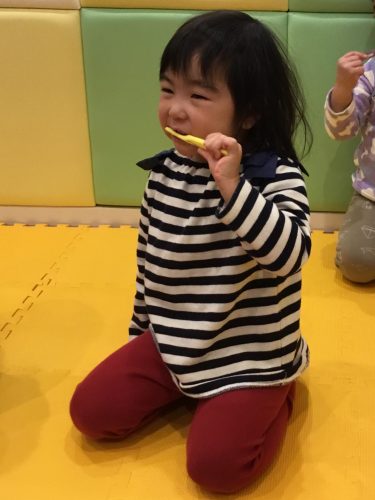 歯磨きが終わると自分たちで上手にブクブクうがいもできるようになりました。