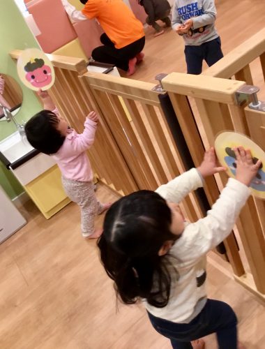 真似っこをするようになり、?1歳児さんのお友だちは2歳児さんのお兄さんお姉さん