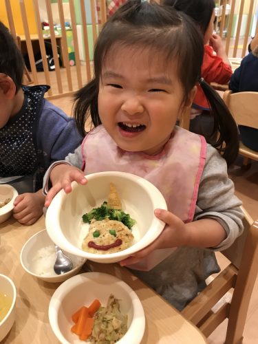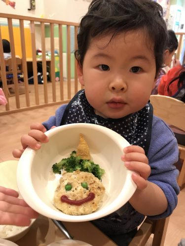 そしてこの日のお給食には何とも可愛らしい鬼のハンバーグでした