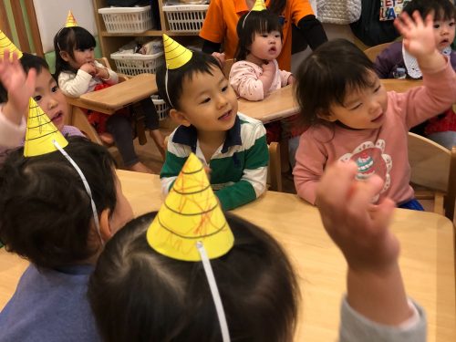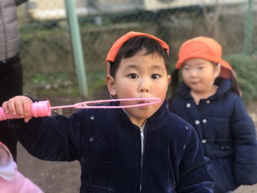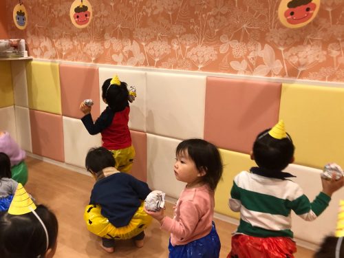 気持ちの良い天気のなかお外でも「鬼は〜そと!福は〜うち!」と豆まきを楽しむことができ、嬉しそうなお子さまたちでした