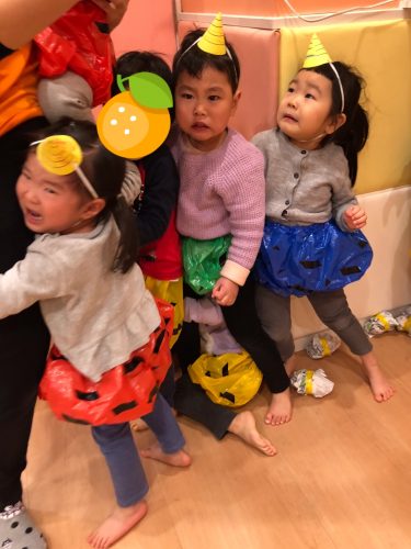 ほとんどのお子さまが怖くて涙が出ており、保育者やお友だちにしがみついてギュ〜!