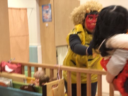 「おにがいたいよ〜ってにげちゃうねー!!」