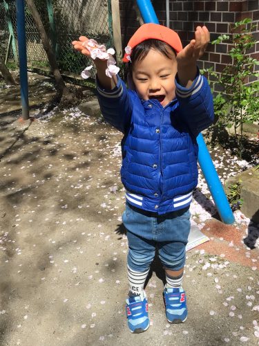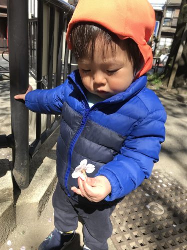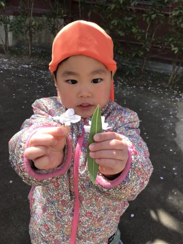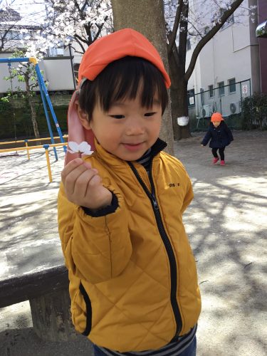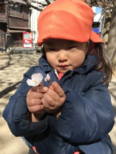 桜が1つ2つ…と咲いたのを見つけたお子さまたち。