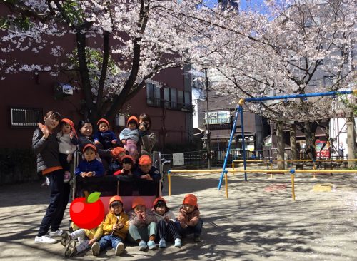 桜の木を見上げながらお子さまたちの笑顔があふれていました![]()
