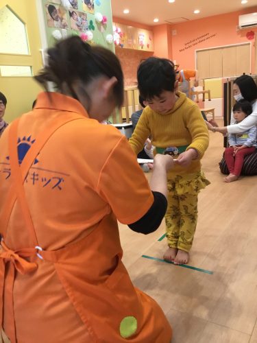 「あーたま かた ひざ ポンッ 」の英語バージョンに合わせて身体を動かしていくのですが、