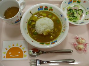 ※「大豆は米にもまさる」日本でもっとも古い医学書『医心方(いしいんぼう)』に出てくることばだそうで、大豆は植物であるにもかかわらず、たんぱく質と脂質が豊富に含まれ「畑の肉」と呼ばれるほどです。苦手な子も多いかもしれませんが、今日の、大豆カレーは大豆も完食できました!!