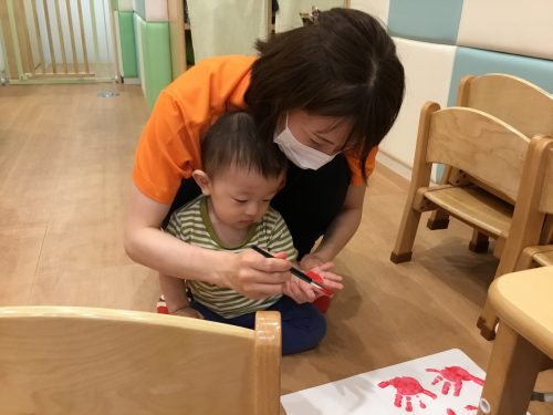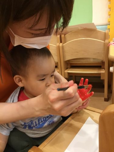 初めて手形スタンプに挑戦してみたお友だちは「何するのかな