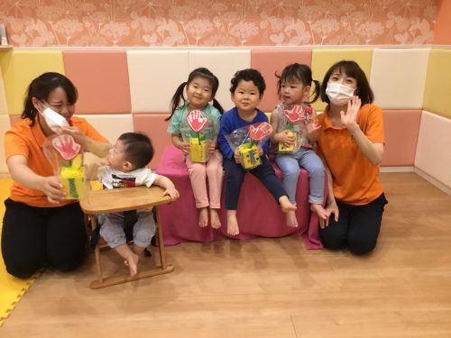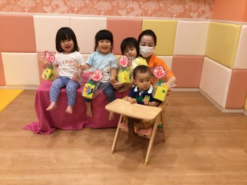 』として大好きなお父さんお母さんに日頃の感謝を込めて(まだ感謝は難しいですが・・・)お子さま達より可愛いお花の手作りプレゼント![]()