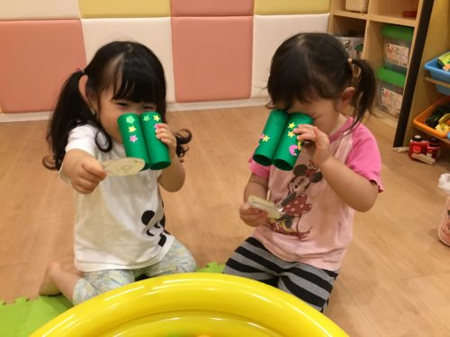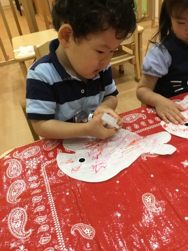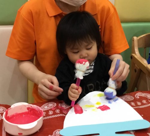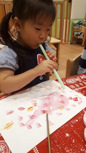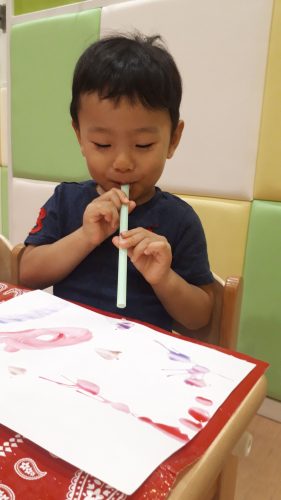 ?いちご組さんは、太いストローで作った、たんぽを使って「ポンポン♪♪」