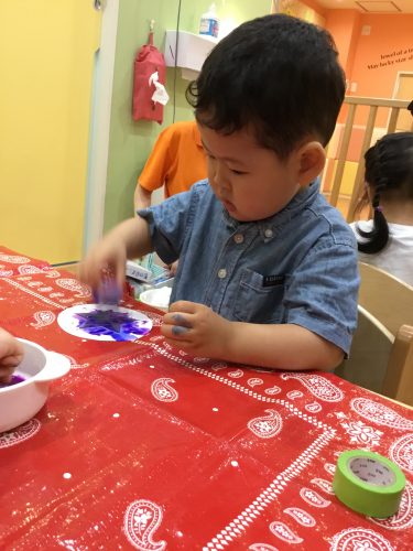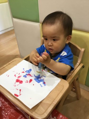 絵の具はベトっとしていて不思議な感触…でも楽しいね!