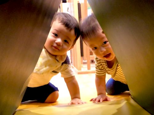 マットの陰から「いないいないばあ」?