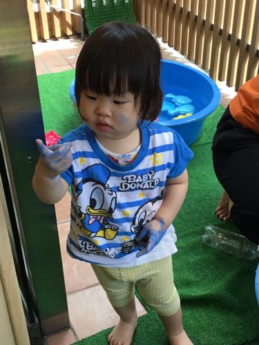 いちご?組の製作でお洋服についた絵の具は、りんご?組のお子さまたちがお洗濯してくれました✨