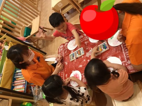 上手にお話を交えて賑やかに製作を行ったりんご組さんでした?