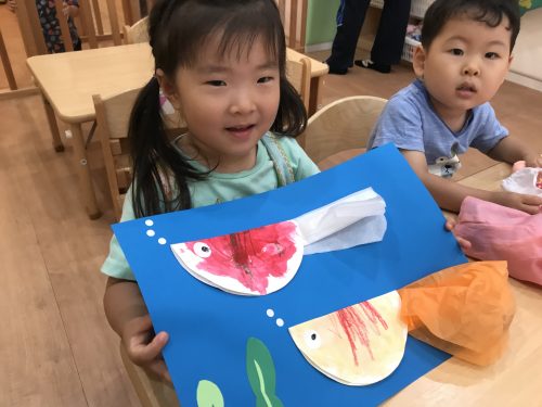可愛い作品が出来上がり、保育室からも夏らしさを感じられます♩