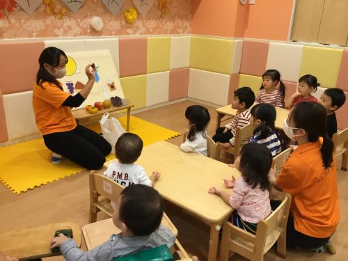 秋の果物などに実際に見てー触ってみたり、五感を使いながら